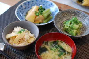 Bamboo shoots prepared in a multitude of ways served alongside each other in the same meal accentuates subtle nuances of flavor and texture. From the cook’s perspective, a tsukushi menu plan offers an opportunity to showcase his or her ability to coax the most from nature’s provisions.