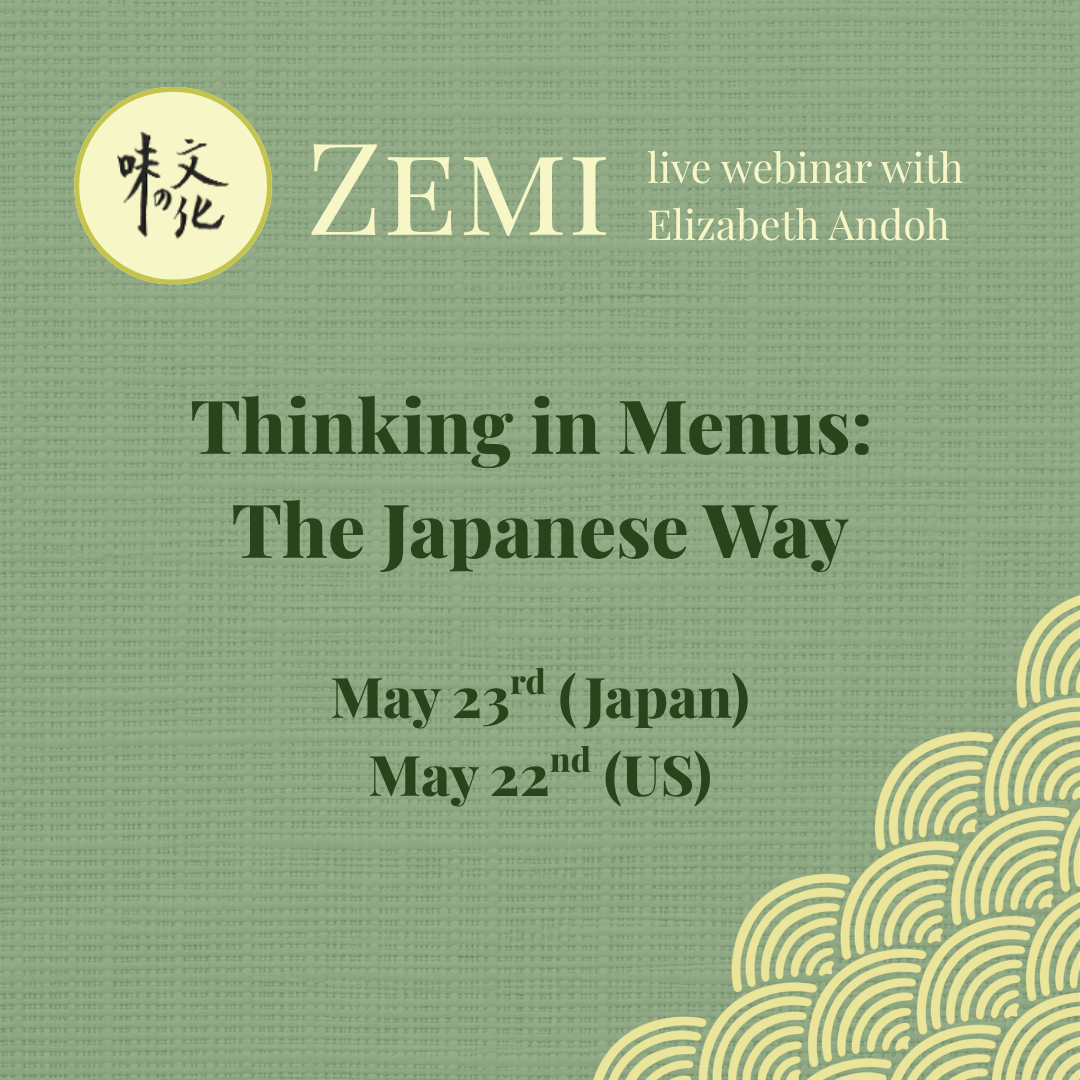 In this 90-minute live webinar, Elizabeth Andoh, one of the foremost English-language authorities on Japanese food and culture, shares the underlying logic of Japanese menu planning: how to compose a meal that feels complete, seasonal, and intentionally balanced… while conserving personal energy and maximizing food and fuel resources.