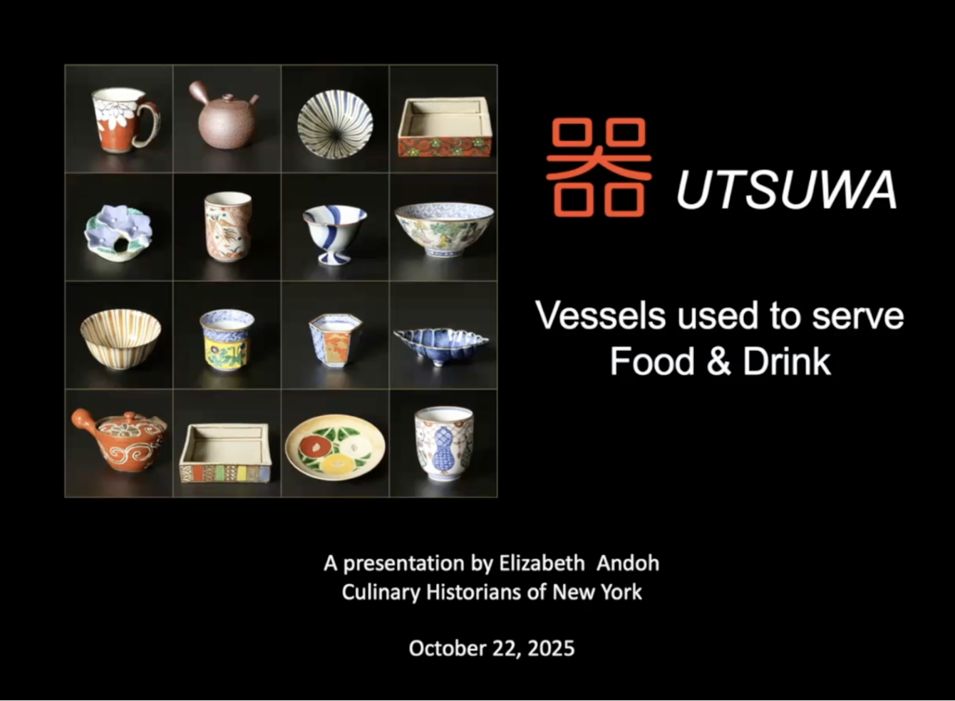 Culinary Historians of New York hosted an online webinar with Elizabeth Andoh on October 22, 2025. To listen, and download printed materials related to the presentation, click on the image here.
